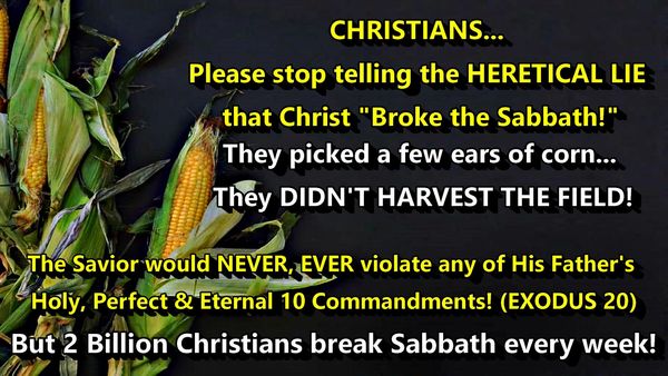 To say the Lord of the Sabbath broke the Sabbath is a lie often used by Christians to justify their own Sabbath breaking wickedness. Didn't we learn anything from our Blessed Messiah, my friends? Christ would never break ANY of the Commandments of His Father. He clearly taught that it was lawful to do good on the sacred Sabbath Day, “to heal & save lives”… NOT PLOW A FIELD OR PAINT YOUR HOUSE!
